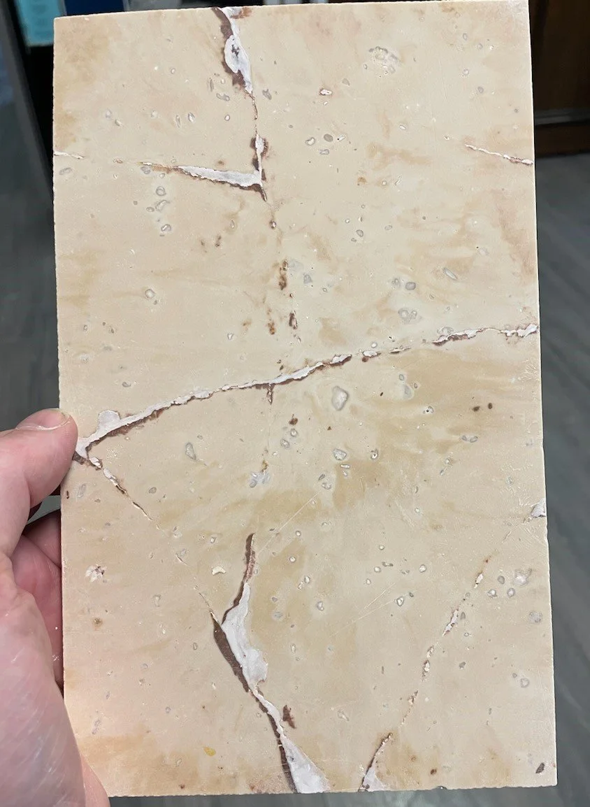 Actually, it's scagliola, a composite of plaster, glue, pigments -- and 11 herbs and spices. Fashionable in 17th century Tuscany, scagliola imitated the look of hard stone but allowed for colors ranging from natural to intense. This sample was whipped up for a luxury retailer in Hawaii.