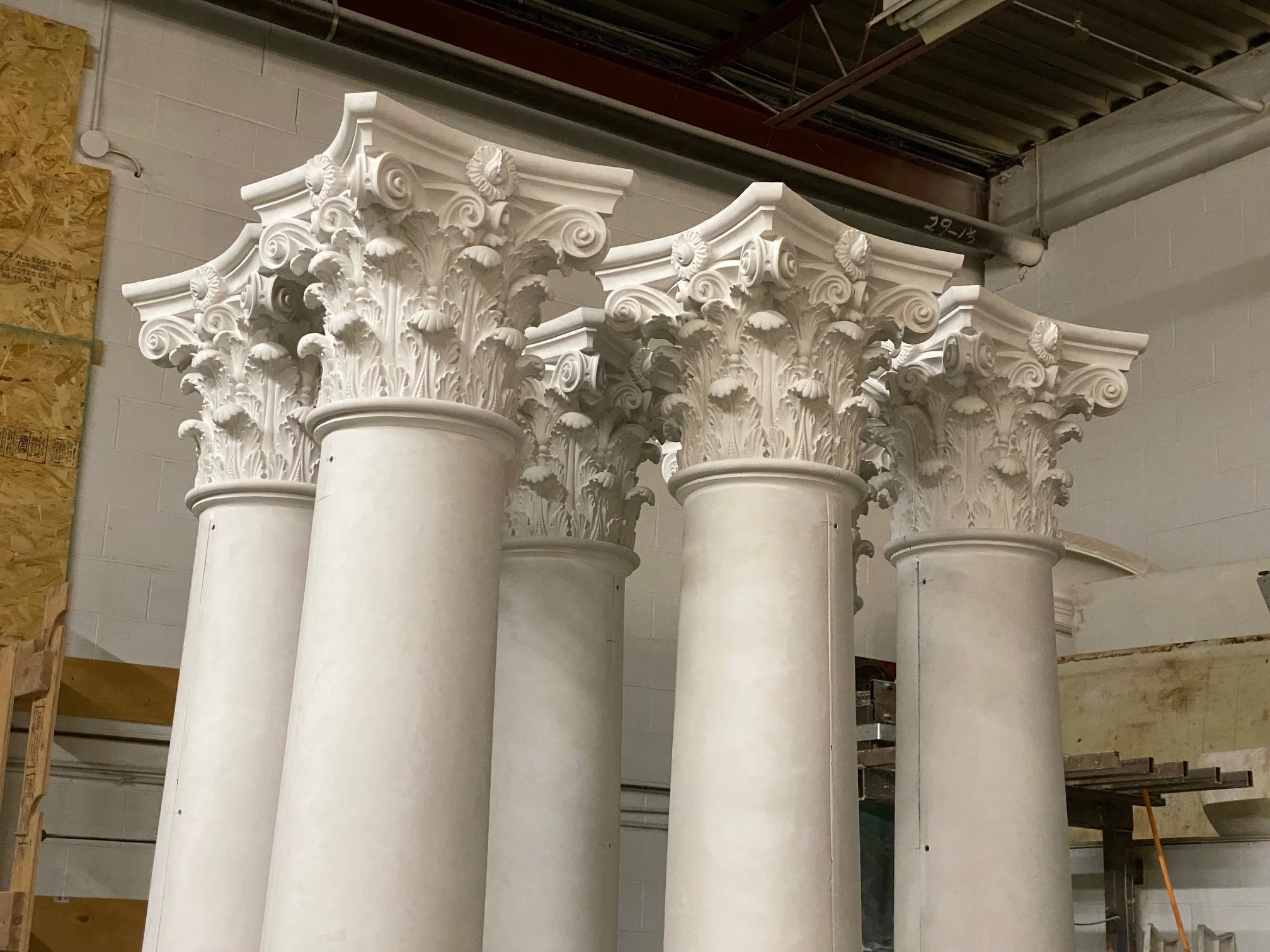 Acanthus leaves adorn a forest of Corinthian capped columns, awaiting their replanting at a residential project in South Dakota.