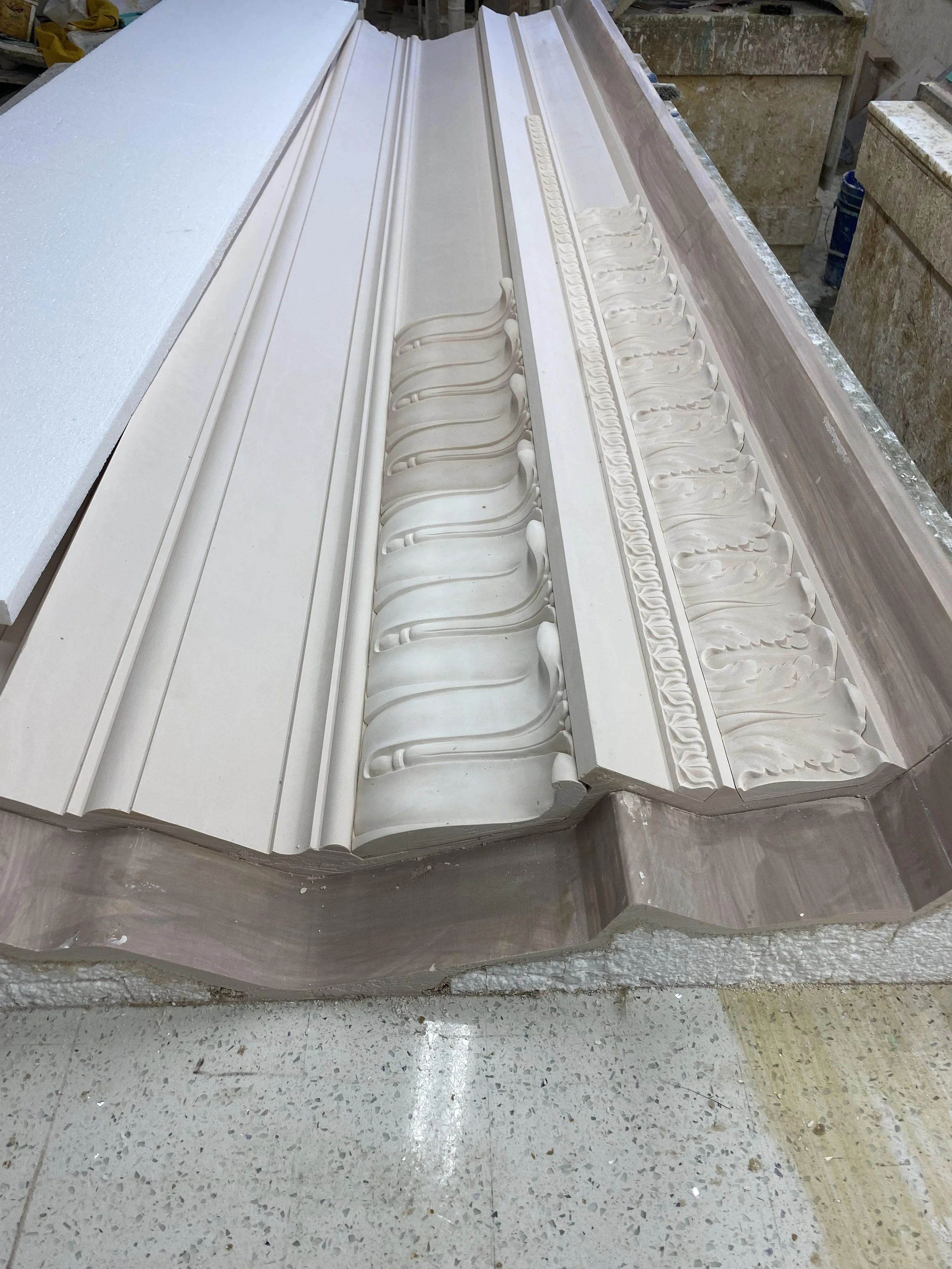 Adding casts of enrichments, one-by-one, till an entire length of cornice is filled.